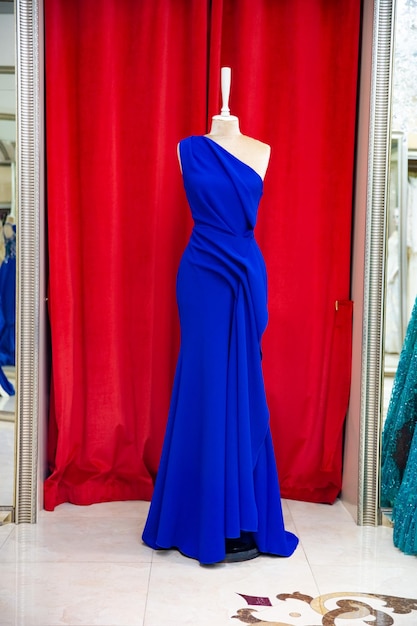 Robe soirée simple/couleur bleu de nuit, sans plissé et à bras moitié ouvert .